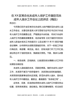 在XX区常态化未成年人保护工作暨防范未成年人溺水工作会议上的讲话(精品).docx