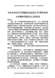 在全乡传达学习西藏自治区成立60周年庆祝大会精神专题会议上的讲话.docx