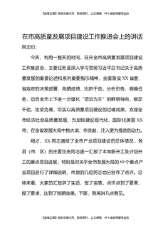 在市高质量发展项目建设工作推进会上的讲话.docx