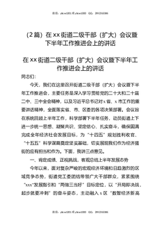 (2篇)在XX街道二级干部(扩大)会议暨下半年工作推进会上的讲话.docx