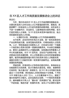在XX区人才工作高质量发展推进会上的讲话.docx