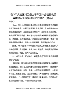 在XX实验区党工委上半年工作会议暨机关效能建设工作推进会上的讲话(精品).docx