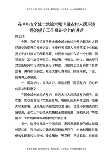 在XX市全域土地综合整治暨农村人居环境整治提升工作推进会上的讲话.docx