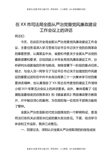 在XX市司法局全面从严治党暨党风廉政建设工作会议上的讲话.docx