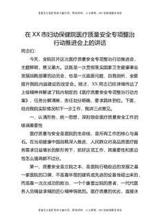 在XX市妇幼保健院医疗质量安全专项整治行动推进会上的讲话.docx