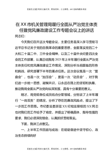 在XX市机关管理局履行全面从严治党主体责任暨党风廉政建设工作专题会议上的讲话.docx