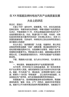 在XX市氢能及燃料电池汽车产业高质量发展大会上的讲话.docx