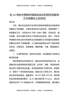 在XX市秋冬季秸秆禁烧及综合利用专项督导工作部署会上的讲话.docx