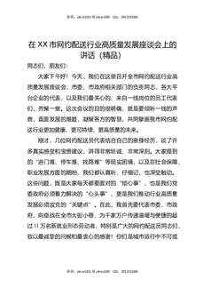 在XX市网约配送行业高质量发展座谈会上的讲话(精品).docx