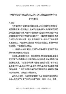 全县预防治理未成年人违法犯罪专项攻坚会议上的讲话.docx