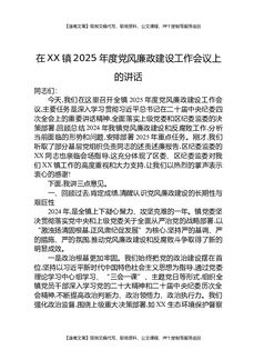 在XX镇2025年度党风廉政建设工作会议上的讲话.docx