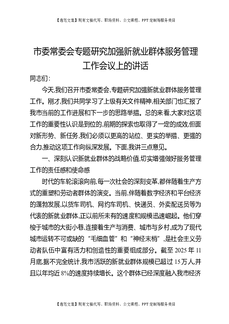 市委常委会专题研究加强新就业群体服务管理工作会议上的讲话.docx