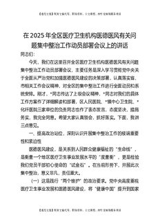 在2025年全区医疗卫生机构医德医风有关问题集中整治工作动员部署会议上的讲话.docx