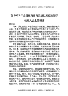 在2025年全县教育体育系统以案促改警示教育大会上的讲话.docx