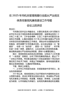 在2025年市机关管理局履行全面从严治党主体责任暨党风廉政建设工作专题会议上的讲话.docx