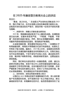 在2025年廉政警示教育大会上的讲话.docx