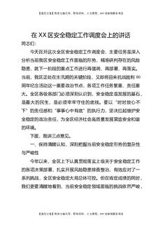 在XX区安全稳定工作调度会上的讲话.docx