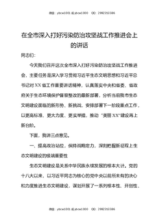 在全市深入打好污染防治攻坚战工作推进会上的讲话.docx