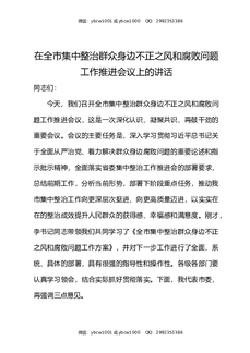 在全市集中整治群众身边不正之风和腐败问题工作推进会议上的讲话.docx