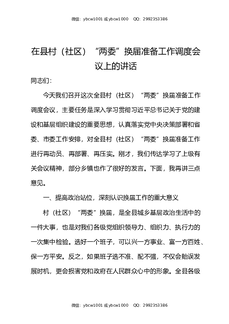 在县村社区两委换届准备工作调度会议上的讲话.docx