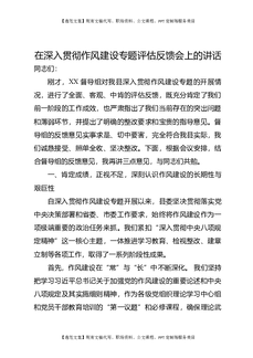 在深入贯彻作风建设专题评估反馈会上的讲话.docx