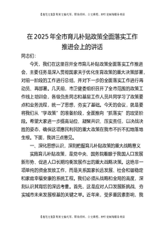 在2025年全市育儿补贴政策全面落实工作推进会上的讲话.docx