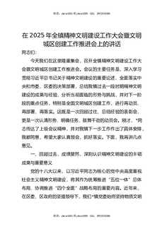 在2025年全镇精神文明建设工作大会暨文明城区创建工作推进会上的讲话.docx