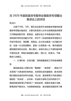 在2025年医院医保专题例会暨医保专项整治推进会上的讲话.docx