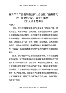 在2025年县委常委会扩大会议暨“提振精气神、提高执行力、大干四季度”动员大会上的讲话.docx