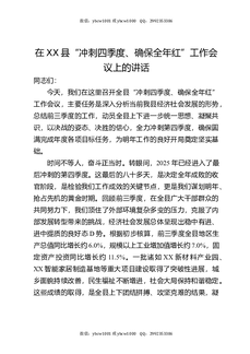 在XX县“冲刺四季度、确保全年红”工作会议上的讲话.docx