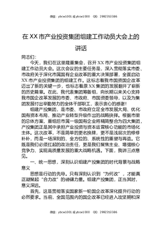 在XX市产业投资集团组建工作动员大会上的讲话.docx