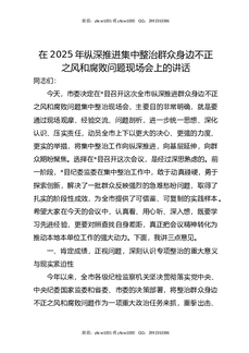 在市大纵深推进集中整治群众身边不正之风和腐败问题现场会上的讲话.docx