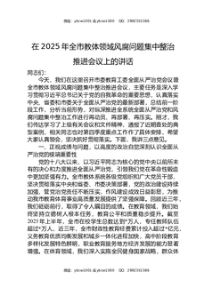 在2025年全市教体领域风腐问题集中整治推进会议上的讲话.docx