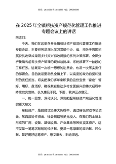 在2025年全镇帮扶资产规范化管理工作推进专题会议上的讲话.docx