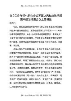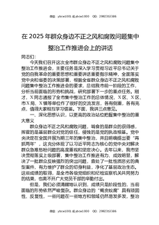 在2025年群众身边不正之风和腐败问题集中整治工作推进会上的讲话.docx
