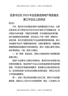 区委书记在2025年全区推进房地产高质量发展工作会议上的讲话.docx