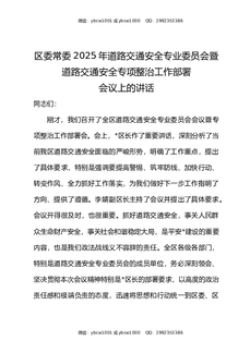 区委常委2025年道路交通安全专业委员会暨道路交通安全专项整治工作部署会议上的讲话.docx