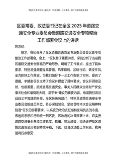 区委常委、政法委书记在全区2025年道路交通安全专业委员会暨道路交通安全专项整治工作部署会议上的讲话.docx
