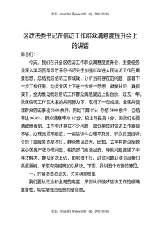区政法委书记在信访工作群众满意度提升会上的讲话.docx