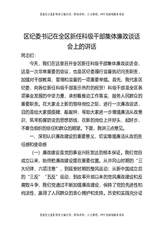区纪委书记在全区新任科级干部集体廉政谈话会上的讲话.docx
