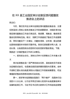 在XX县工业园区审计巡察反馈问题整改推进会上的讲话.docx