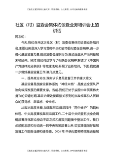 社区(村)监委会集体约谈暨业务培训会上的讲话.docx