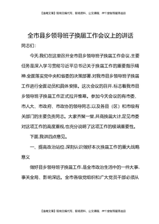 全市市县乡领导班子换届工作会议讲话稿.docx