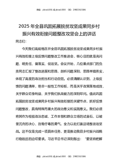 2025年全县巩固拓展脱贫攻坚成果同乡村振兴有效衔接问题整改攻坚会上的讲话.docx