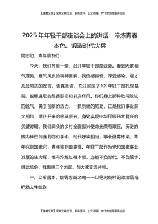 2025年年轻干部座谈会上的讲话:淬炼青春本色,锻造时代尖兵.docx