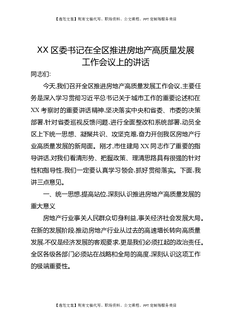 XX区委书记在全区推进房地产高质量发展工作会议上的讲话.docx