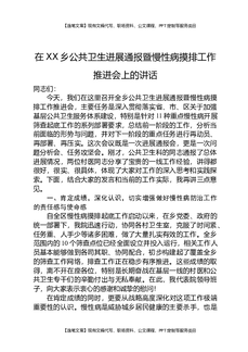 在XX乡公共卫生进展通报暨慢性病摸排工作推进会上的讲话.docx
