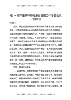 在XX市严重精神障碍患者管理工作专题会议上的讲话.docx