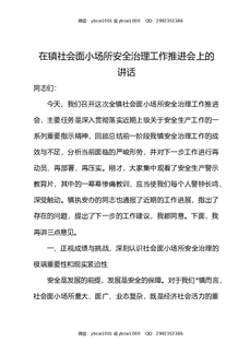 在镇社会面小场所安全治理工作推进会上的讲话.docx