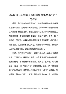 2025年在新提拔干部任前集体廉政谈话会上的讲话.docx